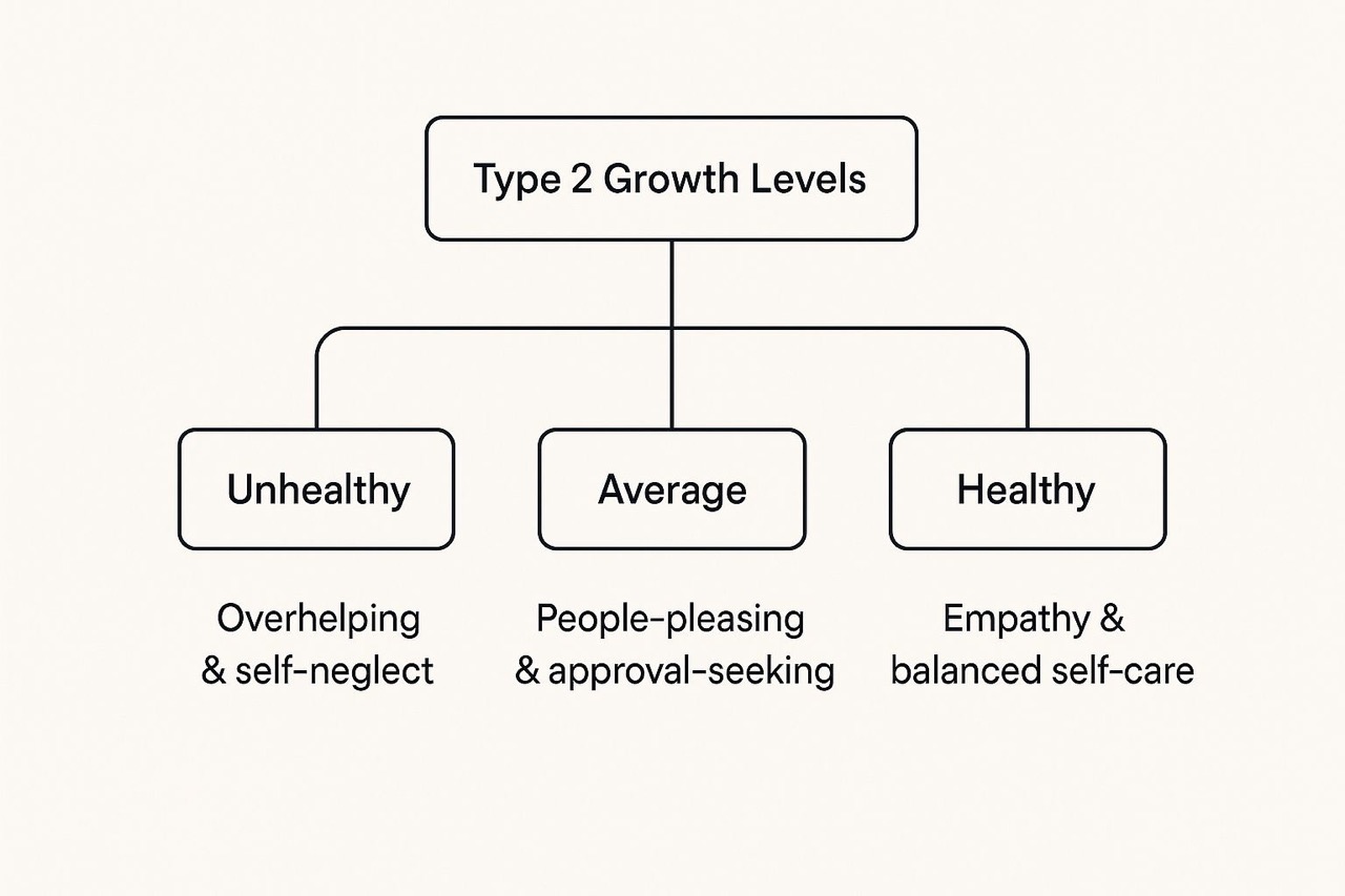É fundamental diferenciar entre expressões saudáveis e não saudáveis da personalidade do Tipo 2. As pessoas que ajudam de forma saudável oferecem apoio que fortalece os outros, permitindo que se tornem independentes. Eles reconhecem a importância dos limites e se sentem à vontade tanto para dar quanto para receber ajuda.
