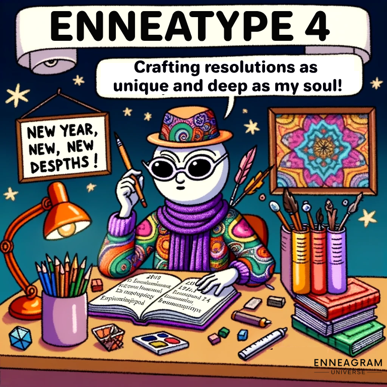 Al Tipo 4 se le puede encontrar en un rincón escribiendo poesía sobre el paso del tiempo, vestido con un traje que probablemente haya diseñado él mismo. Este año, su propósito es experimentar emociones aún más intensas y, tal vez, abrir por fin ese blog de moda.